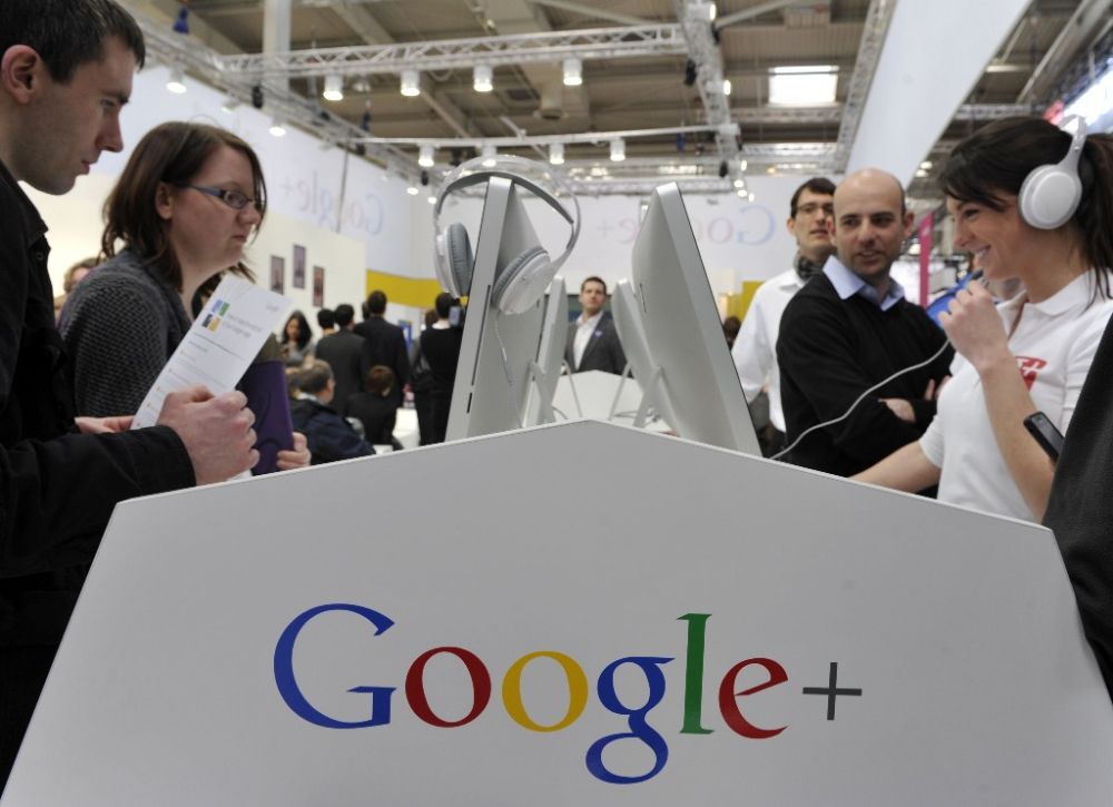 這是2012年3月6日,在德國漢諾威會展中心舉行的漢諾威信息及通信技術博覽會上,參觀者在谷歌展臺參觀。新華社記者馬寧攝