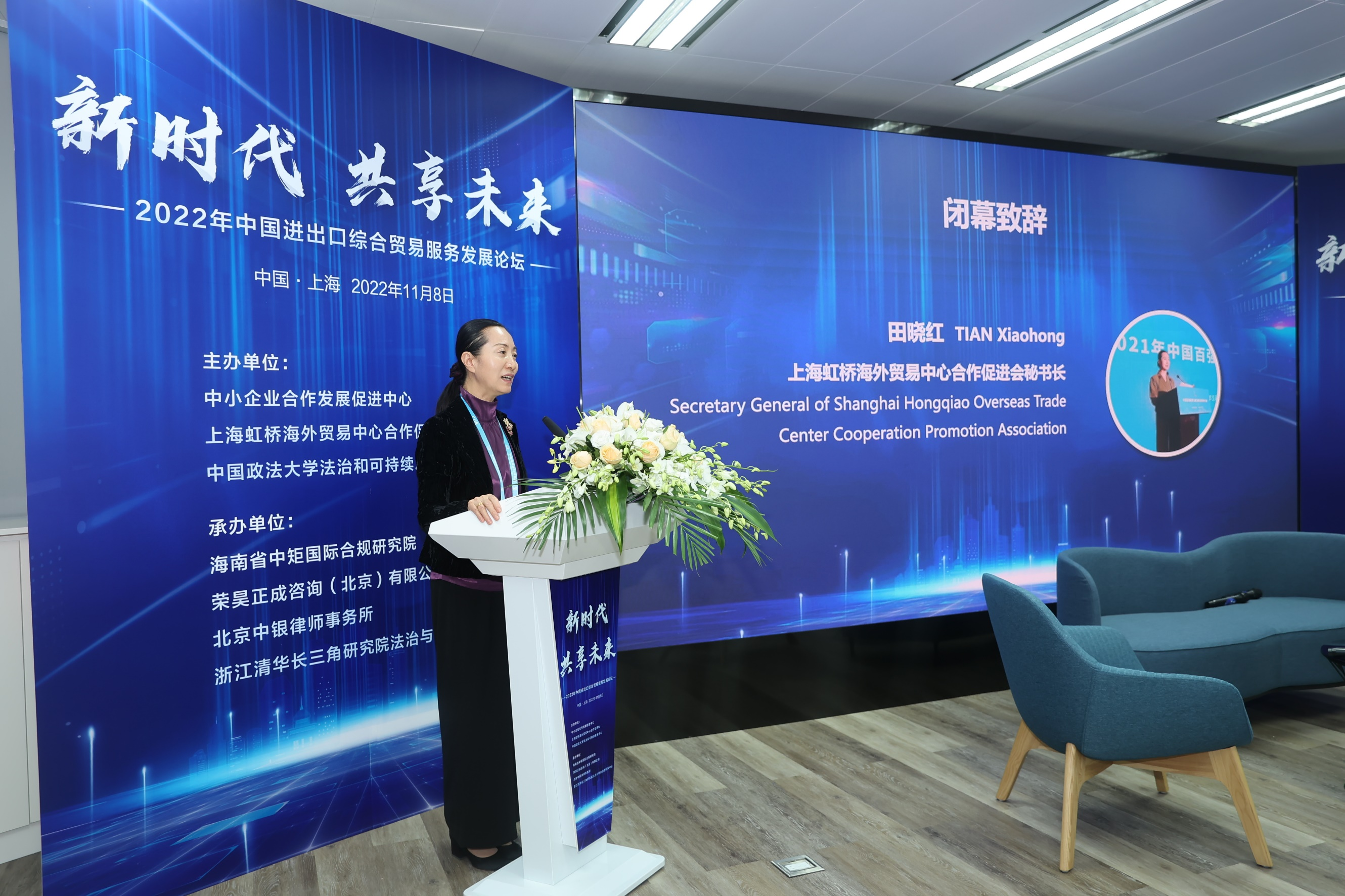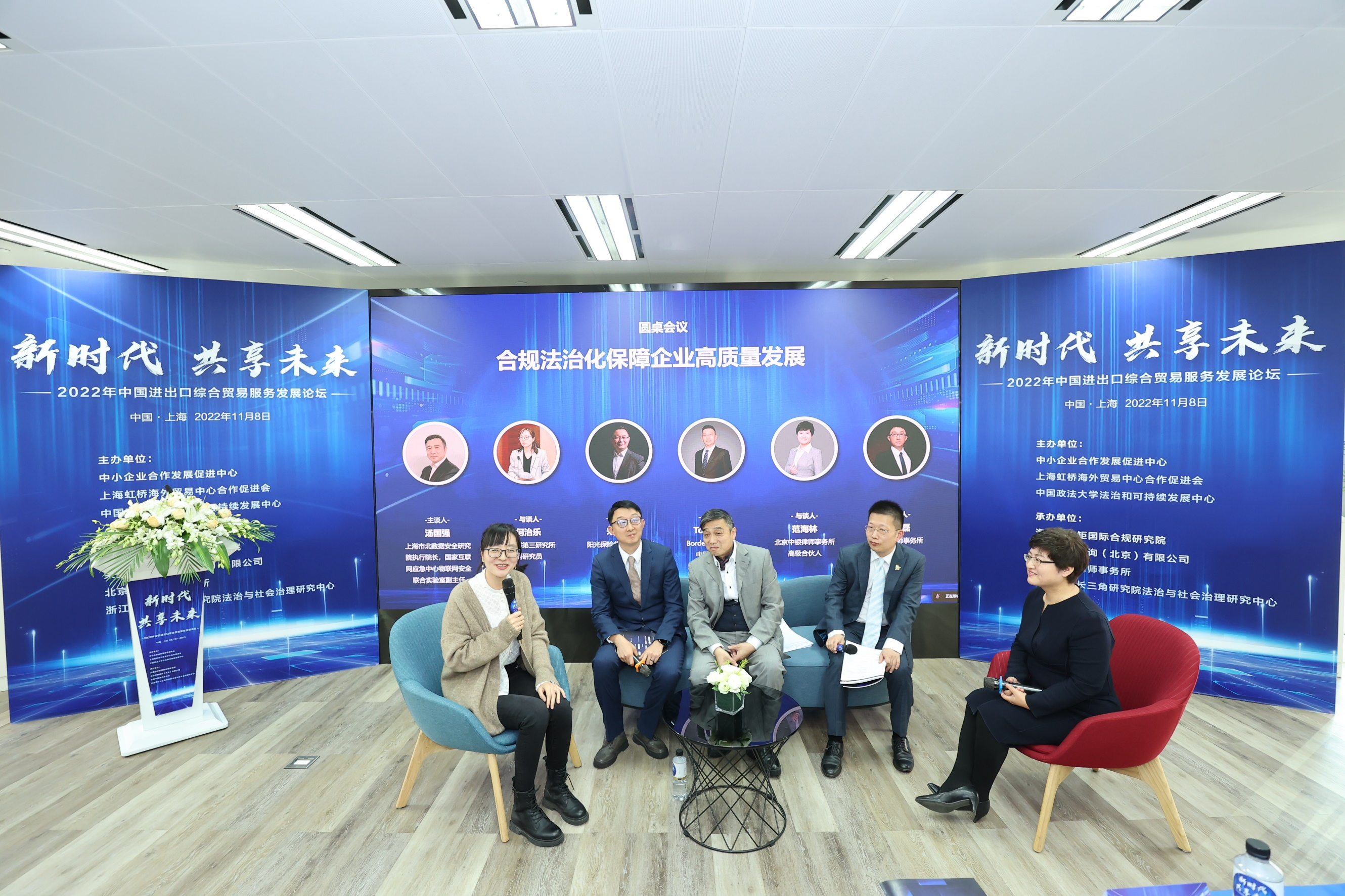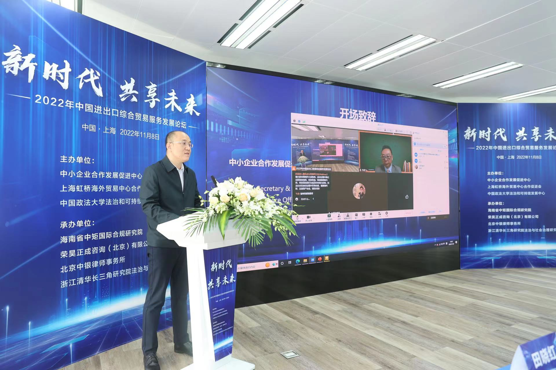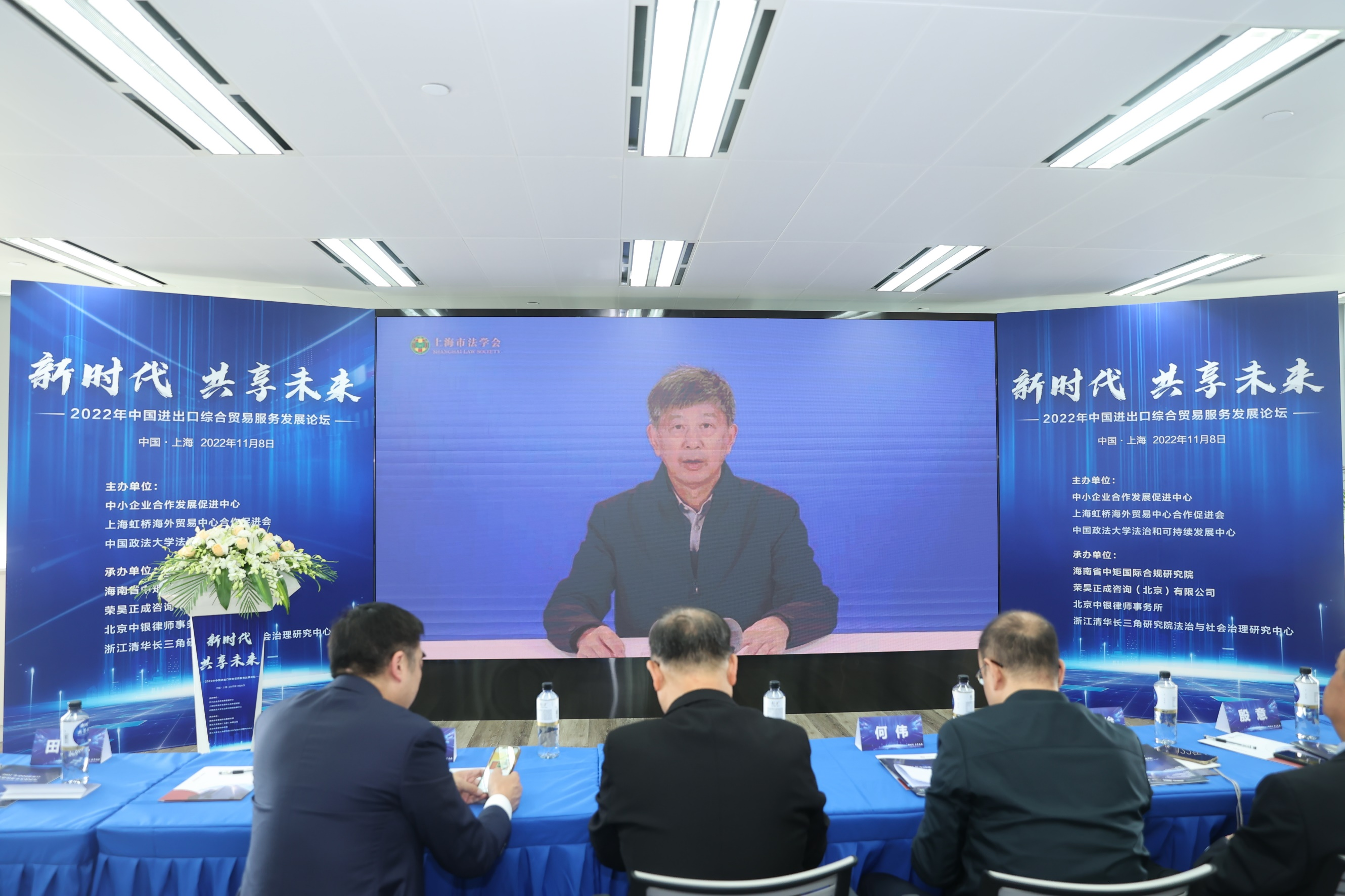 2022年11月8日,由中小企業(yè)合作發(fā)展促進(jìn)中心、上海虹橋海外貿(mào)易中心合作促進(jìn)會(huì)、中國(guó)政法大學(xué)法治與可持續(xù)發(fā)展中心共同主辦的“2022年中國(guó)進(jìn)出口綜合貿(mào)易服務(wù)發(fā)展論壇”在上海虹橋海外貿(mào)易中心隆重舉行,政府領(lǐng)導(dǎo)、專(zhuān)家學(xué)者、企業(yè)代表共同探討綜合貿(mào)易服務(wù)變化及貿(mào)易合規(guī)挑戰(zhàn)。