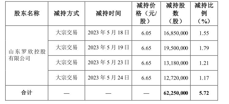 根據(jù)羅欣藥業(yè)彼時(shí)披露的《簡式權(quán)益變動(dòng)報(bào)告書》,在上述期間,羅欣控股通過證券交易系統(tǒng)以大宗交易方式減持6225萬股,共套現(xiàn)約4.04億元。