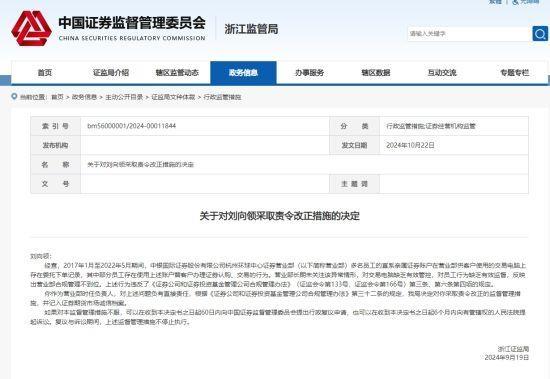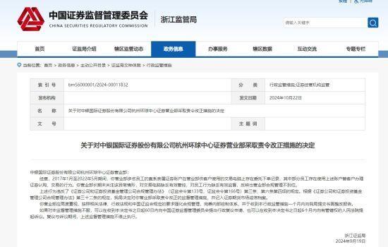 上述行為違反了《證券公司和證券投資基金管理公司合規(guī)管理辦法》(證監(jiān)會令第133號、證監(jiān)會令第166號)第三條、第六條第四項(xiàng)的規(guī)定。根據(jù)《證券公司和證券投資基金管理公司合規(guī)管理辦法》第三十二條的規(guī)定,浙江證監(jiān)局決定對中銀證券杭州環(huán)球中心證券營業(yè)部采取責(zé)令改正的監(jiān)督管理措施,并記入證券期貨市場誠信檔案。