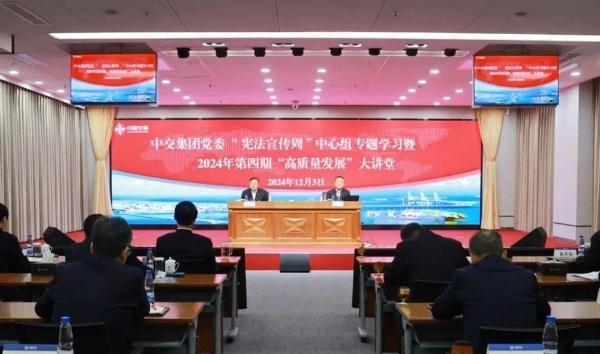 12月3日,中交集團(tuán)黨委舉辦“憲法宣傳周”中心組專題學(xué)習(xí)暨2024年第四期“高質(zhì)量發(fā)展”大講堂。公司黨委書記、董事長(zhǎng)王彤宙出席會(huì)議并講話,強(qiáng)調(diào)要深入學(xué)習(xí)貫徹黨的二十屆三中全會(huì)精神,進(jìn)一步完善海外合規(guī)體系、提升涉外法治管理水平,為公司海外業(yè)務(wù)高質(zhì)量發(fā)展保駕護(hù)航。黨委常委、總會(huì)計(jì)師劉正昶宣貫國(guó)務(wù)院國(guó)資委黨委關(guān)于中央企業(yè)境外廉潔合規(guī)工作要求。公司黨委中心組成員參加學(xué)習(xí)。
