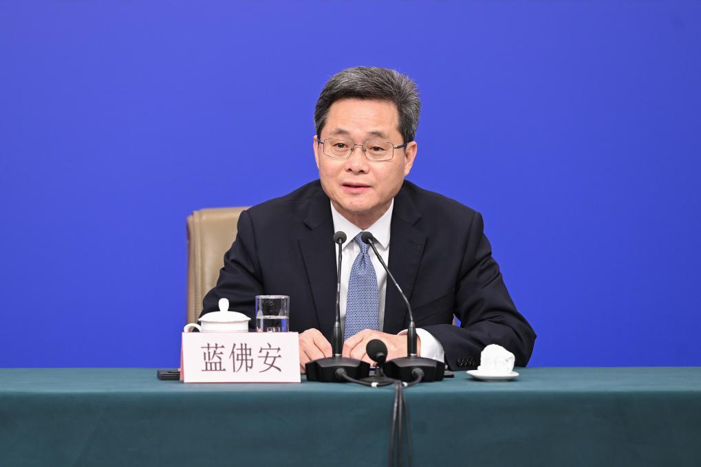 3月6日,十四屆全國人大三次會議在北京梅地亞中心新聞發(fā)布廳舉行記者會。國家發(fā)展和改革委員會主任鄭柵潔、財政部部長藍佛安、商務(wù)部部長王文濤、中國人民銀行行長潘功勝、中國證券監(jiān)督管理委員會主席吳清就發(fā)展改革、財政預算、商務(wù)、金融證券等相關(guān)問題回答中外記者提問。新華社記者 胥冰潔 攝