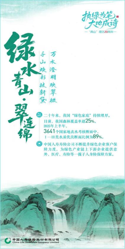 青山鋪卷,金融作筆;執(zhí)筆為綠,大地成詩(shī)。在奔赴“雙碳”目標(biāo)的壯闊征途上,中國(guó)人壽正以中國(guó)式ESG的生動(dòng)實(shí)踐,為全球可持續(xù)發(fā)展貢獻(xiàn)東方智慧,書寫著不負(fù)綠水青山的時(shí)代新篇。