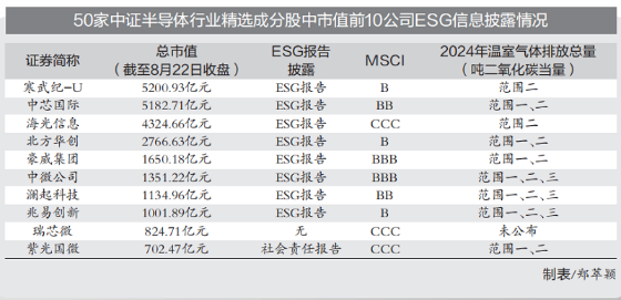 近日,伴隨著新一代大語言模型DeepSeek-V3.1的發(fā)布,市場對半導(dǎo)體行業(yè)的關(guān)注度進一步提升??沙掷m(xù)發(fā)展關(guān)乎半導(dǎo)體行業(yè)長期競爭力,中國證券報記者梳理了50家中證半導(dǎo)體行業(yè)精選成分股的ESG信息披露情況發(fā)現(xiàn),ESG相關(guān)報告(包括可持續(xù)發(fā)展報告、社會責(zé)任報告)披露率達(dá)66%;市值排名靠前公司ESG評級表現(xiàn)更優(yōu)。對芯片設(shè)計與設(shè)備制造環(huán)節(jié)而言,科技創(chuàng)新與知識產(chǎn)權(quán)保護、數(shù)據(jù)安全與隱私保護、員工培養(yǎng)與成長等公司治理類和社會類議題尤為重要。