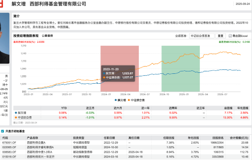 另一只西部利得灃睿利率債則自2024年10月30日開始管理,解文增對該產(chǎn)品的在管時長還不足一年;截至2025年9月24日,西部利得灃睿利率債A的任職回報為1.02%,在全市場排名處于末位5%。