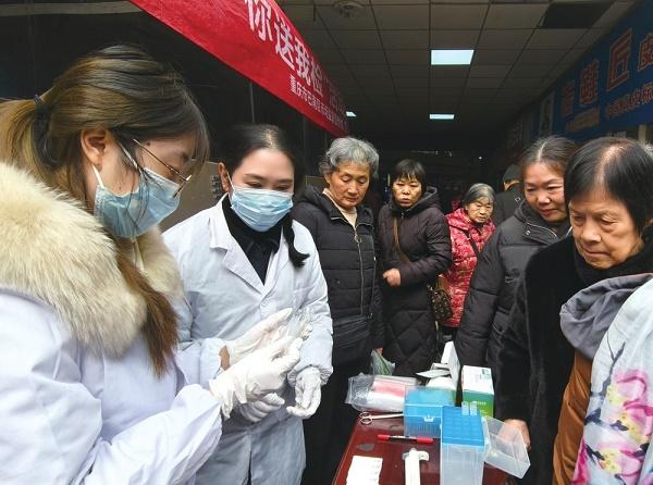 圖為工作人員在農(nóng)貿(mào)市場內(nèi)快檢。王丹本報(bào)記者 謝旺 文/攝