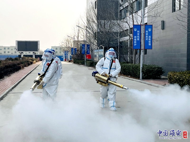 安新縣消防救援大隊隊員正在進行消殺作業(yè)。中國雄安官網(wǎng)發(fā)