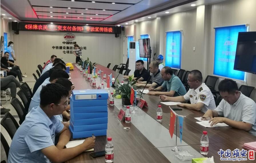 中國(guó)雄安官網(wǎng)7月4日電 為進(jìn)一步推動(dòng)《保障農(nóng)民工工資支付條例》宣傳貫徹工作,營(yíng)造和諧勞動(dòng)用工關(guān)系的氛圍,按照《貫徹實(shí)施<保障農(nóng)民工工資支付條例>執(zhí)法宣傳培訓(xùn)活動(dòng)方案》部署,6月30日,雄安新區(qū)綜合執(zhí)法局和容城縣勞動(dòng)保障監(jiān)察大隊(duì)前往容西片區(qū)C單元安置房及配套設(shè)施項(xiàng)目C1標(biāo)段中鐵十二局集團(tuán)項(xiàng)目部、C3標(biāo)段中鐵建設(shè)集團(tuán)項(xiàng)目部,聯(lián)合開(kāi)展了執(zhí)法宣傳進(jìn)工地活動(dòng)。