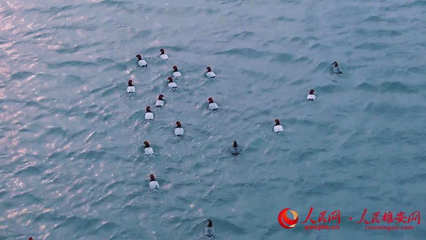 成群結(jié)隊(duì)的國(guó)家“三有”保護(hù)動(dòng)物紅頭潛鴨在白洋淀游曳。高騰攝