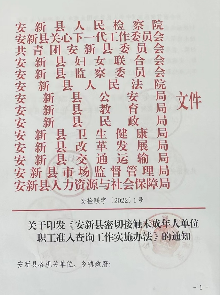 今年3月初,安新縣檢察院聯(lián)合縣關(guān)工委、公安局等13家單位召開《安新縣密切接觸未成年人單位職工準(zhǔn)入查詢工作實施辦法》(以下簡稱《辦法》)會簽單位聯(lián)席會。3月中旬,該《辦法》印發(fā)施行后,要求密切接觸未成年人單位新招聘職工入職前必須查詢,在職員工每年定期查詢,全縣15個密切接觸未成年人行業(yè)中的6691名職工進行了準(zhǔn)入查詢。截至目前,排查出2起查詢存在不良記錄情況,均已整改到位。