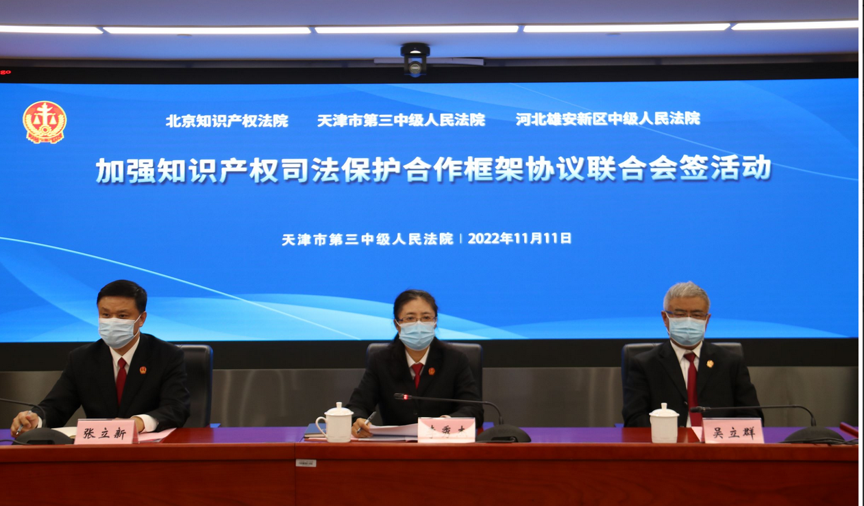 黨的二十大報告明確提出“加強知識產(chǎn)權(quán)法治保障,形成支持全面創(chuàng)新的基礎(chǔ)制度”,同時提出“促進區(qū)域協(xié)調(diào)發(fā)展”并將“推進京津冀協(xié)同發(fā)展”擺在首位。11月11日,北京知識產(chǎn)權(quán)法院與天津市第三中級人民法院、河北雄安新區(qū)中級人民法院共同簽署《加強知識產(chǎn)權(quán)司法保護合作框架協(xié)議》,深入貫徹落實黨的二十大精神和黨中央決策部署,開啟京津冀知識產(chǎn)權(quán)協(xié)同保護事業(yè)新征程,為京津冀協(xié)同發(fā)展和國家創(chuàng)新驅(qū)動發(fā)展戰(zhàn)略實施作出新的更大貢獻。