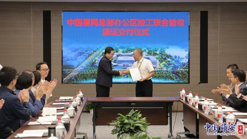 中國星網(wǎng)雄安總部項目竣工聯(lián)合驗收頒證儀式現(xiàn)場。雄安新區(qū)宣傳網(wǎng)信局供圖
