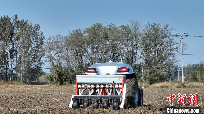 10月22日,河北雄安新區(qū)安新縣端村鎮(zhèn)關(guān)城二村一農(nóng)田內(nèi),“鴻鵠T70”電動(dòng)智能拖拉機(jī)準(zhǔn)備進(jìn)行秋播作業(yè)。中新社記者 韓冰 攝