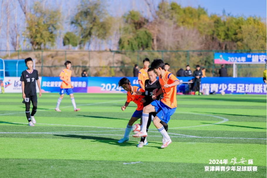 本次“雄安杯”共設(shè)置小學(xué)男子組(U12)、初中男子組(U14)兩個組別,吸引了來自京津冀三地的25支球隊參加。在為期4天的賽程中,300余名足球運動員激戰(zhàn)63場,用技術(shù)、戰(zhàn)術(shù)和精彩紛呈的競技水平,呈現(xiàn)了對足球運動的熱愛。