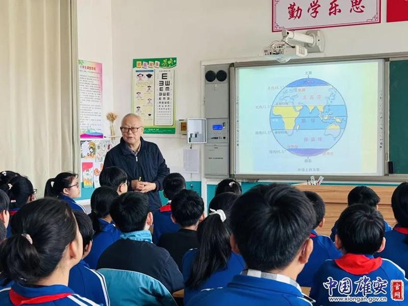 中國(guó)科學(xué)院老科協(xié)科普講師團(tuán)在仇小王小學(xué)進(jìn)行主題講座。中國(guó)雄安官網(wǎng)發(fā)