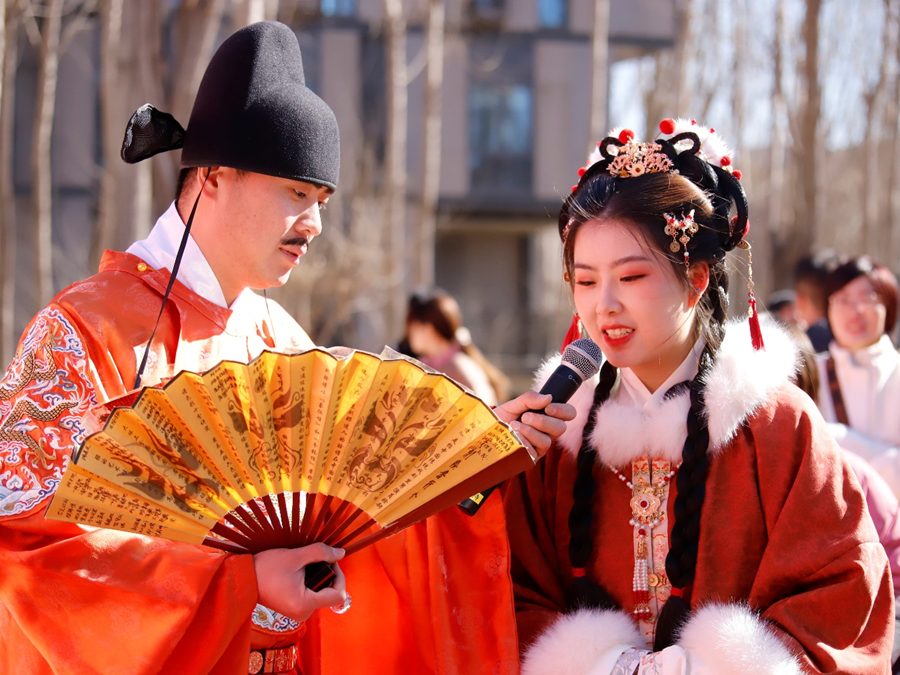 活動內(nèi)容精彩紛呈,共設(shè)置了“李白對詩”“團圓錘丸”“福運紅包”“幸運抽獎”等別出心裁的互動游戲環(huán)節(jié),書法家揮毫潑墨,現(xiàn)場書寫送福團扇,手藝人精心制作糖葫蘆和炫彩棉花糖等美食,讓大家在游戲活動中品味元宵,現(xiàn)場一片歡聲笑語、其樂融融,洋溢著喜慶祥和的節(jié)日氛圍。