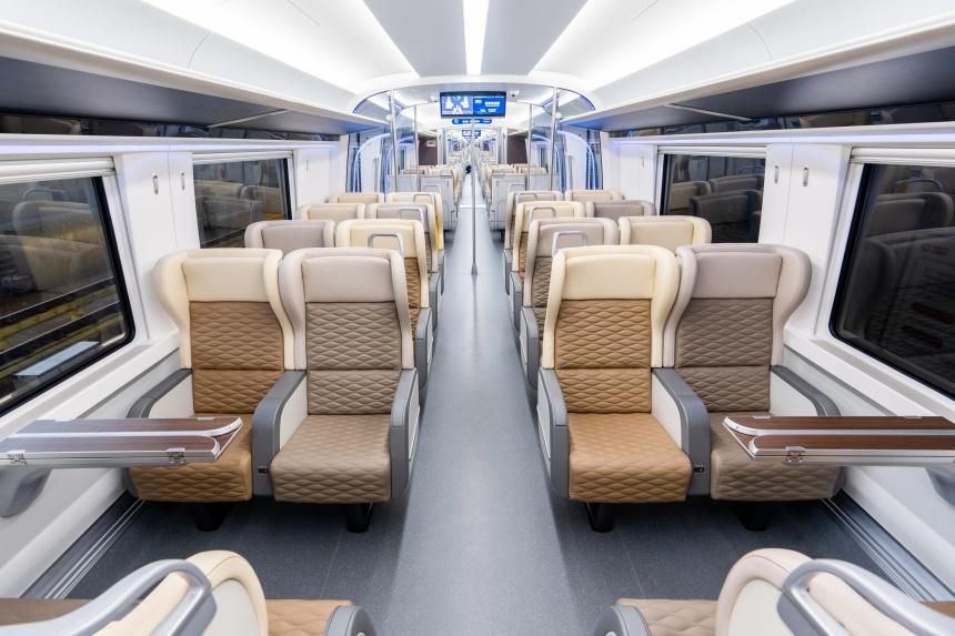 京雄快線D型市域動(dòng)車(chē)組車(chē)廂內(nèi)部。雄安軌道公司供圖