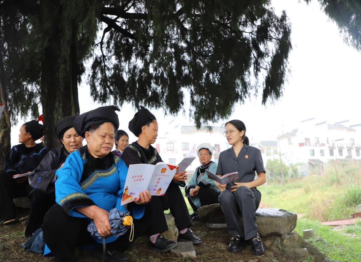 作為一名水族法官,蒙勝翠還結(jié)合本地水族群眾講傳統(tǒng)、重習(xí)俗,蒙勝翠就借助“水書先生”“繡娘”的智慧與經(jīng)驗(yàn),將水家文化習(xí)俗與現(xiàn)代法治精神相融合,通過(guò)開展“水語(yǔ)法庭”“布依語(yǔ)法庭”巡回審判,聯(lián)合“水書先生”等鄉(xiāng)賢參與矛盾糾紛調(diào)處,成立“繡娘調(diào)解室”、組建“水鄉(xiāng)巾幗調(diào)解隊(duì)伍”等,開展多方聯(lián)動(dòng),實(shí)現(xiàn)情理法融合,促進(jìn)矛盾糾紛實(shí)質(zhì)化解。