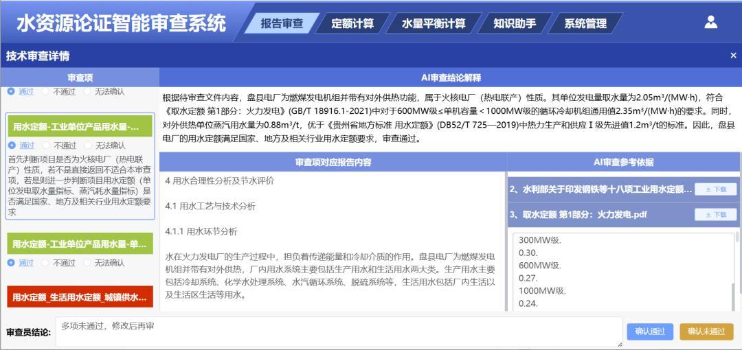 水資源論證報告智能審查系統(tǒng)的應用,可以避免出現(xiàn)因報告書質(zhì)量差而開展專家審查的不利局面,可以大大提高審查效率,同時也提升了審查的規(guī)范性、公正性和科學性,提高水利新質(zhì)生產(chǎn)力。