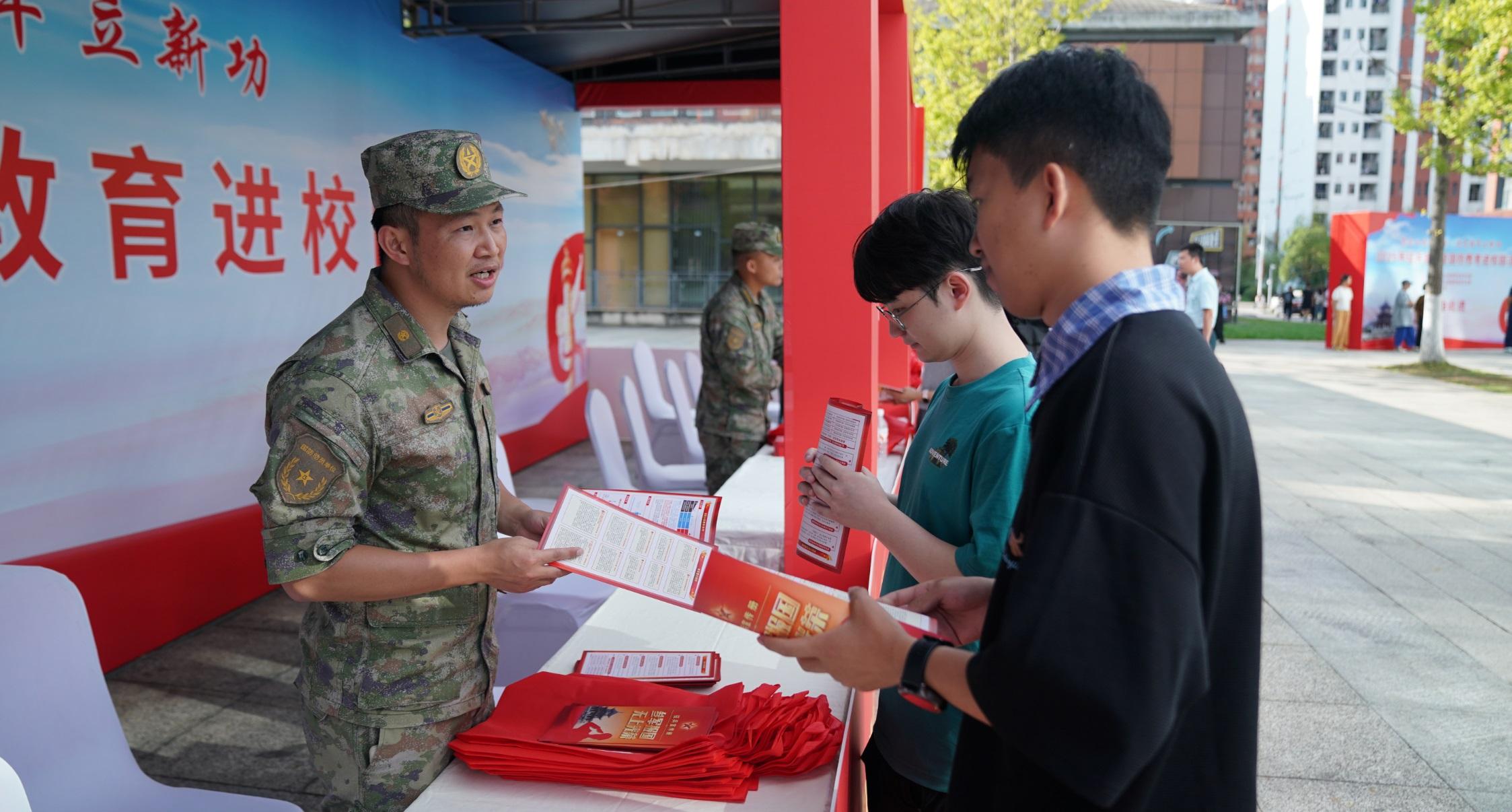 此外,征兵宣傳暨國防教育進(jìn)校園活動(dòng)也在劇場外有序展開。校園內(nèi)設(shè)置的國防教育展板和征兵政策咨詢點(diǎn)上,來自各區(qū)(市、縣)的征兵工作人員向師生們?cè)敿?xì)介紹征兵政策、宣傳國防知識(shí),吸引了眾多學(xué)生駐足咨詢,不少學(xué)生表示深受觸動(dòng),心中燃起了參軍報(bào)國的熱情。