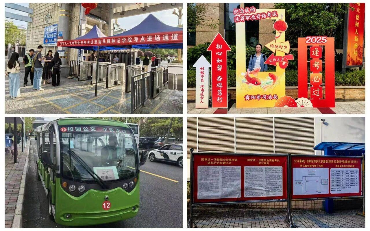 這樣的溫情時刻,在貴州各考區(qū)不斷上演。針對特殊考生的“定制化服務(wù)”,成為此次法考的鮮明亮點:遵義考區(qū)為腿腳受傷的彭某某調(diào)整“愛心考座”,開通無障礙通道,考務(wù)人員全程攙扶引導(dǎo),還制作考點全景指引圖,幫考生提前規(guī)劃路線;六盤水考區(qū)對懷孕考生格外關(guān)照,用人工安檢替代金屬探測儀減少心理負擔(dān),為6個月身孕的朱女士遞上溫?zé)犸嬘盟图雍衩拮鴫|,考試中不時輕聲詢問,動態(tài)關(guān)注需求;安順考區(qū)接到考生黃某因車禍行動不便的求助后,迅速為其調(diào)整靠近過道的座位,考試當(dāng)天考務(wù)人員早早等候,小心翼翼攙扶她進出考場;銅仁考區(qū)則在考點大門、路口轉(zhuǎn)角設(shè)置醒目的考場示意圖,安排引導(dǎo)人員指引,還準(zhǔn)備了飲用水和應(yīng)對低血糖的應(yīng)急食品,醫(yī)務(wù)人員全程駐守,為頭暈考生提供及時醫(yī)療服務(wù)。