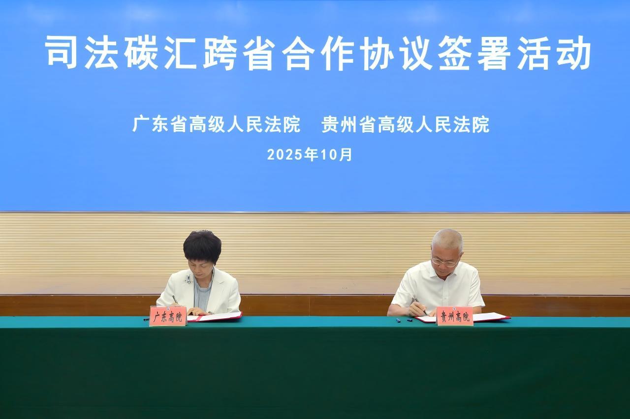 10月13日,廣東省高級人民法院與貴州省高級人民法院在廣州舉行司法碳匯跨省合作協(xié)議簽署活動,此舉標(biāo)志著粵黔兩省法院在環(huán)境資源司法協(xié)作方面邁出重要一步,也為服務(wù)國家“雙碳”目標(biāo)、推動生態(tài)文明建設(shè)注入司法新動能。