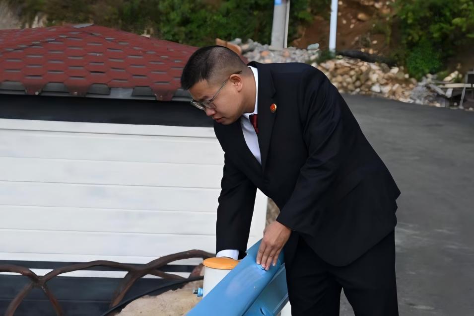 圖為駐點(diǎn)檢察人員檢查護(hù)欄情況。