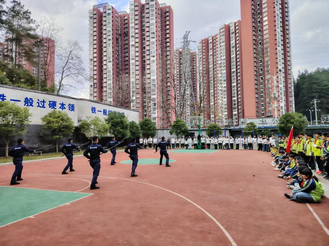 活動(dòng)伊始,特(巡)警大隊(duì)以精湛的技戰(zhàn)術(shù)表演拉開(kāi)序幕,應(yīng)急棍、隊(duì)列訓(xùn)練等實(shí)戰(zhàn)演練贏得陣陣掌聲。隨后,警員演示了快速搭建應(yīng)急帳篷、警用摩托車(chē)等現(xiàn)代化警用裝備,學(xué)生們?cè)诿窬笇?dǎo)下體驗(yàn)戰(zhàn)術(shù)頭盔、防彈背心等器械,直觀感受公安科技的進(jìn)步與警員日常訓(xùn)練的艱辛。