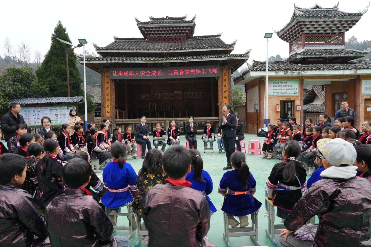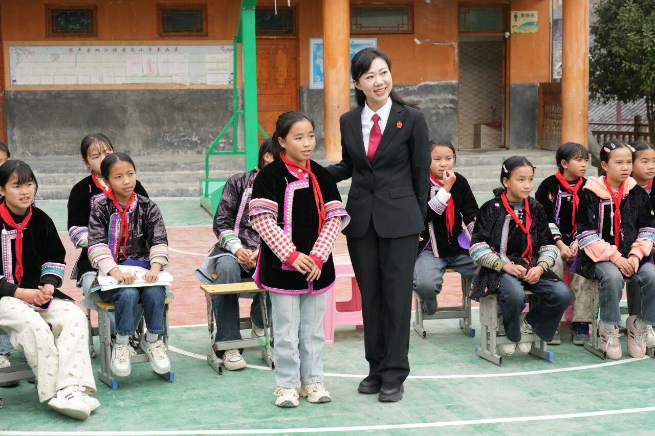 為切實加強青少年法治教育,筑牢未成年人健康成長法治防線,近日,貴州省高級人民法院、黔東南州中級人民法院、黎平縣人民法院,在黎平縣雙江中、小學開展“‘鴻雁’護航助成長 法治陽光照侗寨”法治宣傳進校園活動。