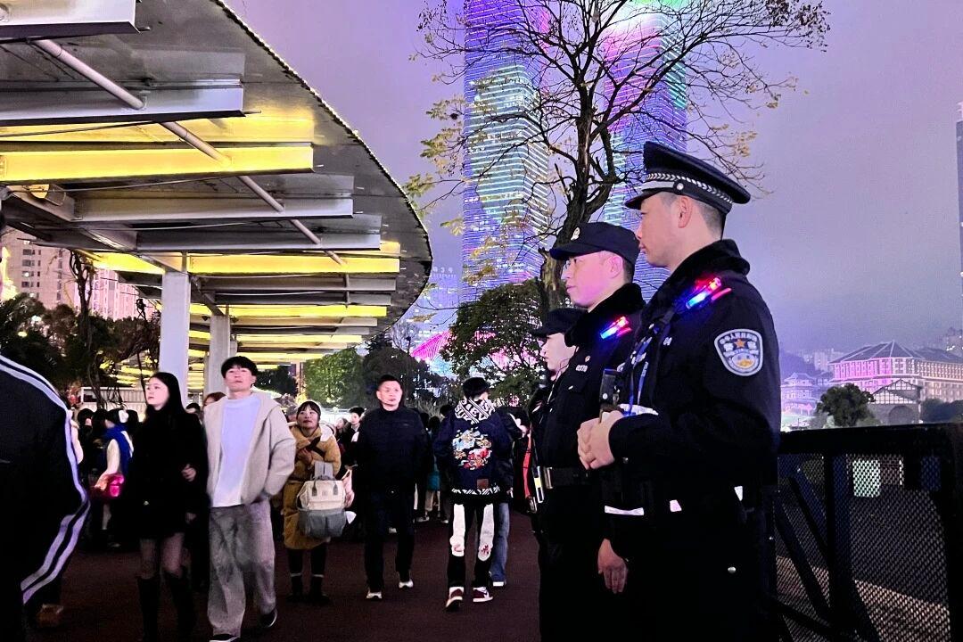 圖為貴陽公安民警在跨年夜活動現(xiàn)場執(zhí)勤。