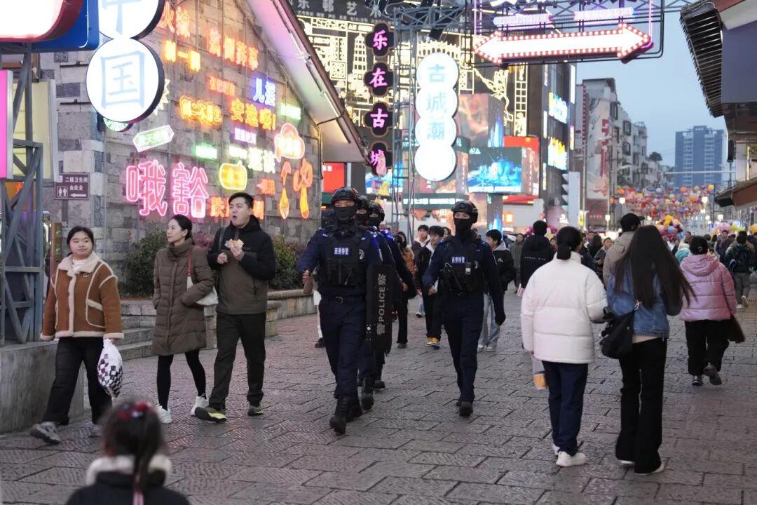 為確保元旦假期全省社會面安全穩(wěn)定,貴州省公安機關(guān)嚴(yán)格落實公安武警聯(lián)勤武裝巡邏和快速反應(yīng)機制,針對夜市、商圈等人員密集場所和機場、車站等重點部位開展社會治安巡邏防控,累計投入警力2.3萬余人次,做到“見警察、見警燈、見警車”,有力維護了良好治安秩序。