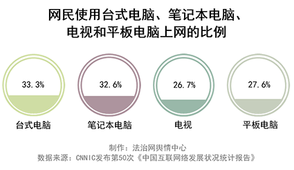 隨著智能手機(jī)普及,移動網(wǎng)絡(luò)速度大幅提升,網(wǎng)絡(luò)接入環(huán)境變得多元。據(jù)第50次《報(bào)告》顯示,我國手機(jī)網(wǎng)民已達(dá)到10.47億,占總體的99.6%;使用臺式電腦、筆記本電腦、電視和平板電腦上網(wǎng)的比例分別為33.3%、32.6%、26.7%和27.6%。