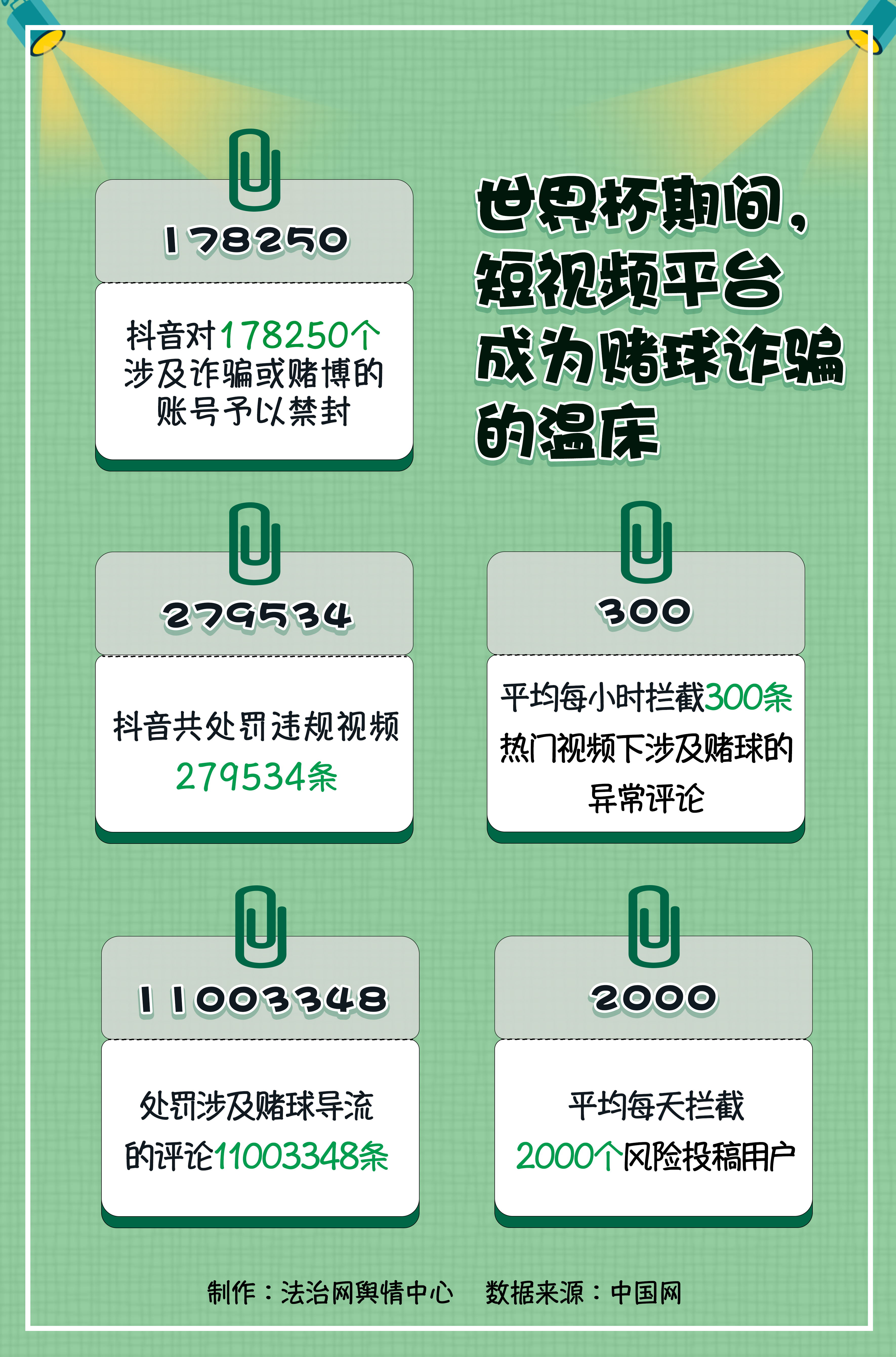 1.中國(guó)網(wǎng):打擊借世界杯賭球詐騙,抖音封禁賬號(hào)逾17萬(wàn)個(gè)