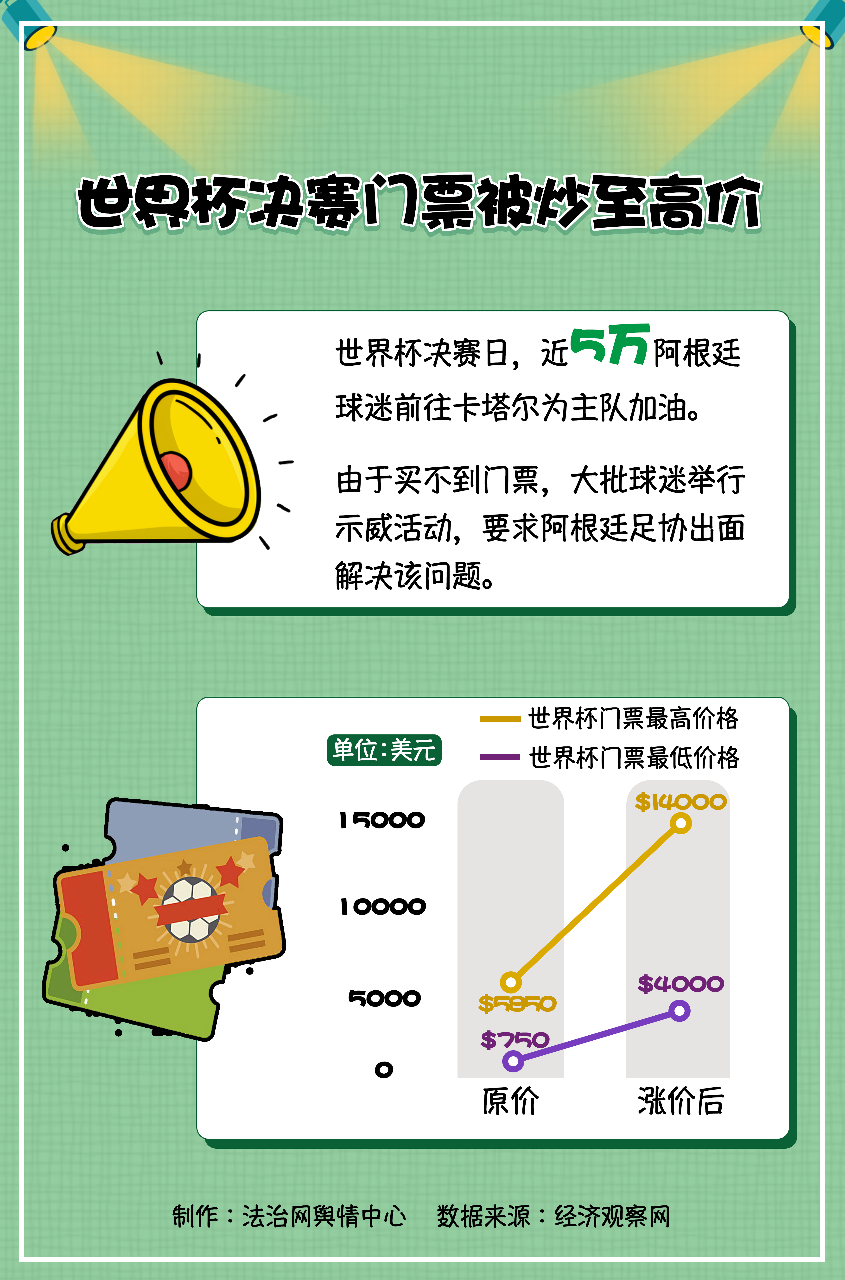 5. 經(jīng)濟(jì)觀察網(wǎng):世界杯決賽門(mén)票已炒到近10萬(wàn)元,超5萬(wàn)名阿根廷球迷涌入卡塔爾