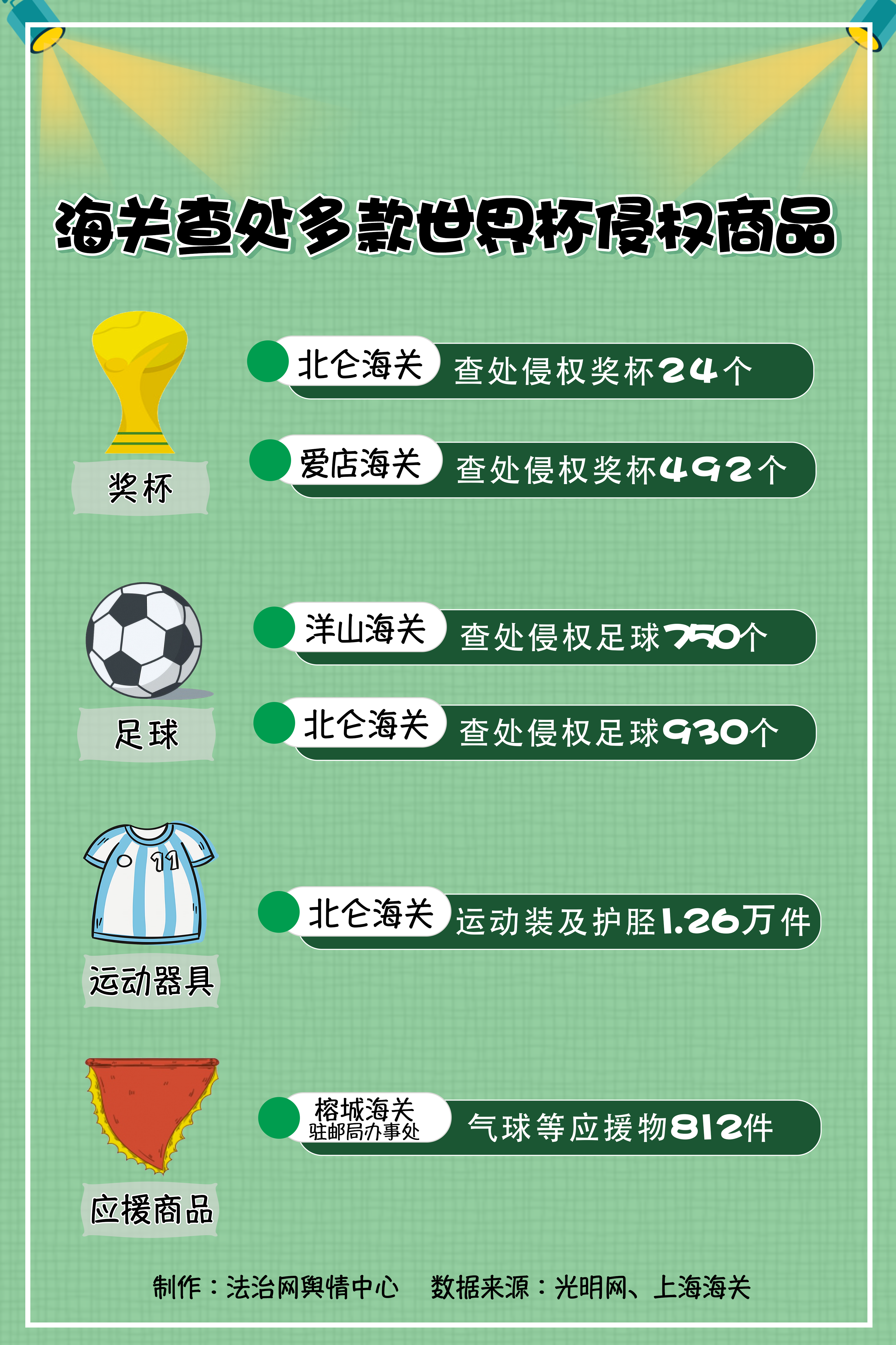 2. 光明網(wǎng):南寧海關(guān)查獲假“大力神杯”492個(gè),經(jīng)國(guó)際足聯(lián)確認(rèn)為侵權(quán)貨物