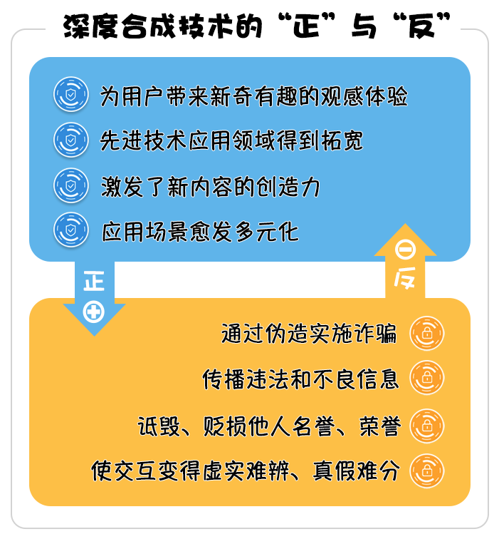 深度合成技術(shù)是一柄“雙刃劍”,其作為人工智能內(nèi)容合成技術(shù),近些年風頭正盛。此技術(shù)正被應用于新聞傳媒、教育、電子商務等諸多領(lǐng)域。若正確使用該技術(shù),不僅可以使應用場景更加多元化,還可激發(fā)新的創(chuàng)造,造福社會。若惡意使用該技術(shù),則會嚴重損害人民群眾合法權(quán)益,嚴重威脅社會信息安全。