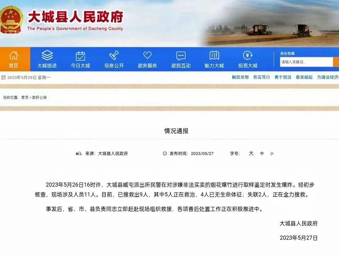 5月26日下午,網(wǎng)傳河北大城縣一派出所院內(nèi)發(fā)生爆炸,事故原因引發(fā)網(wǎng)民追問。5月27日8時(shí)許,大城縣人民政府網(wǎng)站通報(bào)稱:“5月26日16時(shí)許,大城縣臧屯派出所民警在對(duì)涉嫌非法買賣的煙花爆竹進(jìn)行取樣鑒定時(shí)發(fā)生爆炸。經(jīng)初步核查,現(xiàn)場涉及人員11人。其中,4人已無生命體征,失聯(lián)2人。”然而,通報(bào)中提及的爆炸原因卻成為后續(xù)輿情發(fā)酵點(diǎn),網(wǎng)民不解派出所民警為何要去鑒定煙花爆竹,部分網(wǎng)民借機(jī)對(duì)死去民警進(jìn)行冷嘲熱諷,發(fā)布揣測(cè)性信息,并獲得其他網(wǎng)民點(diǎn)贊。面對(duì)這種局面,當(dāng)?shù)卣⑽催M(jìn)行回應(yīng)和解釋,認(rèn)證為“河北省公安廳政治部副主任”的賬號(hào)“@永華的小菜園”批評(píng)當(dāng)?shù)氐男畔l(fā)布“語焉不詳導(dǎo)致誤讀”。