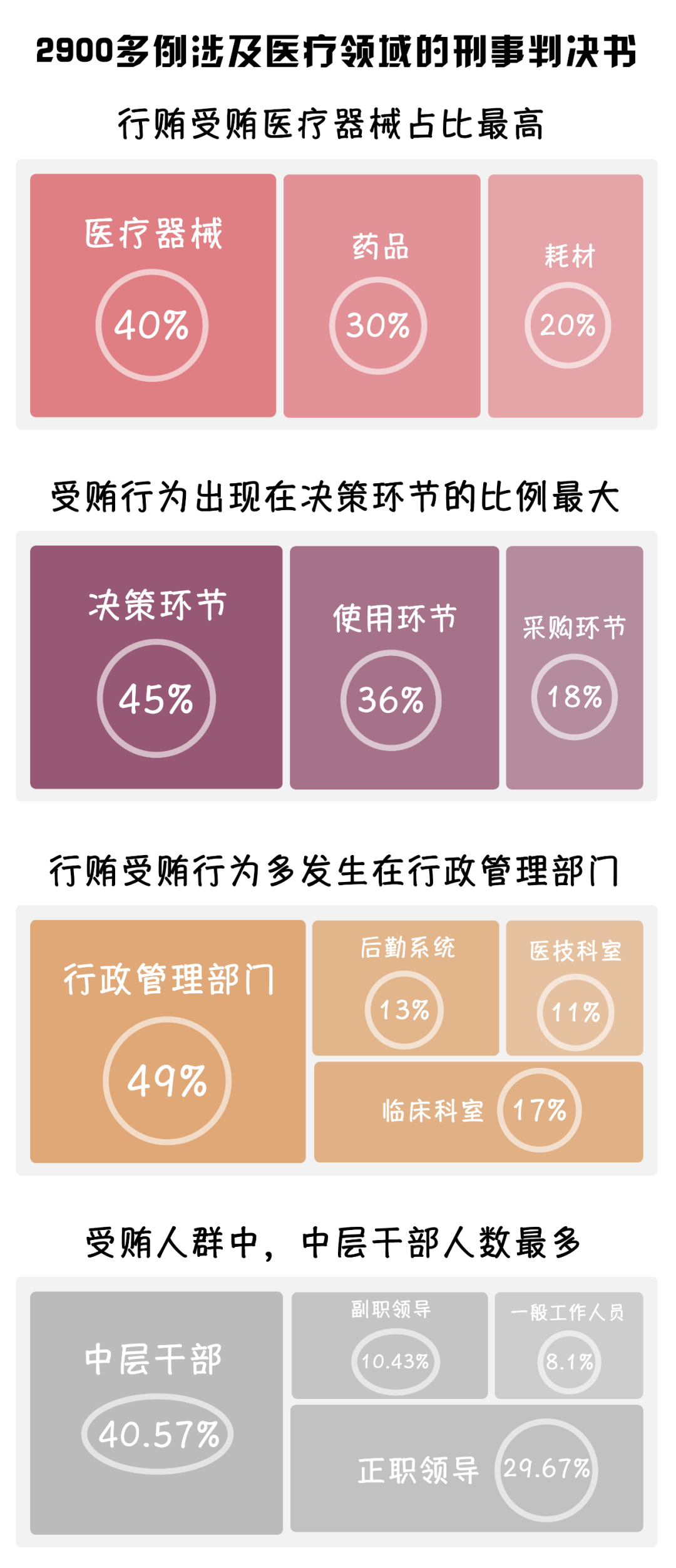 中國新聞網(wǎng)發(fā)布了一篇名為《2900多份醫(yī)療腐敗刑事判決書背后》的文章,其中梳理了2013-2021年間2900多例涉及醫(yī)療領域的刑事判決書,提到了如下關鍵點: