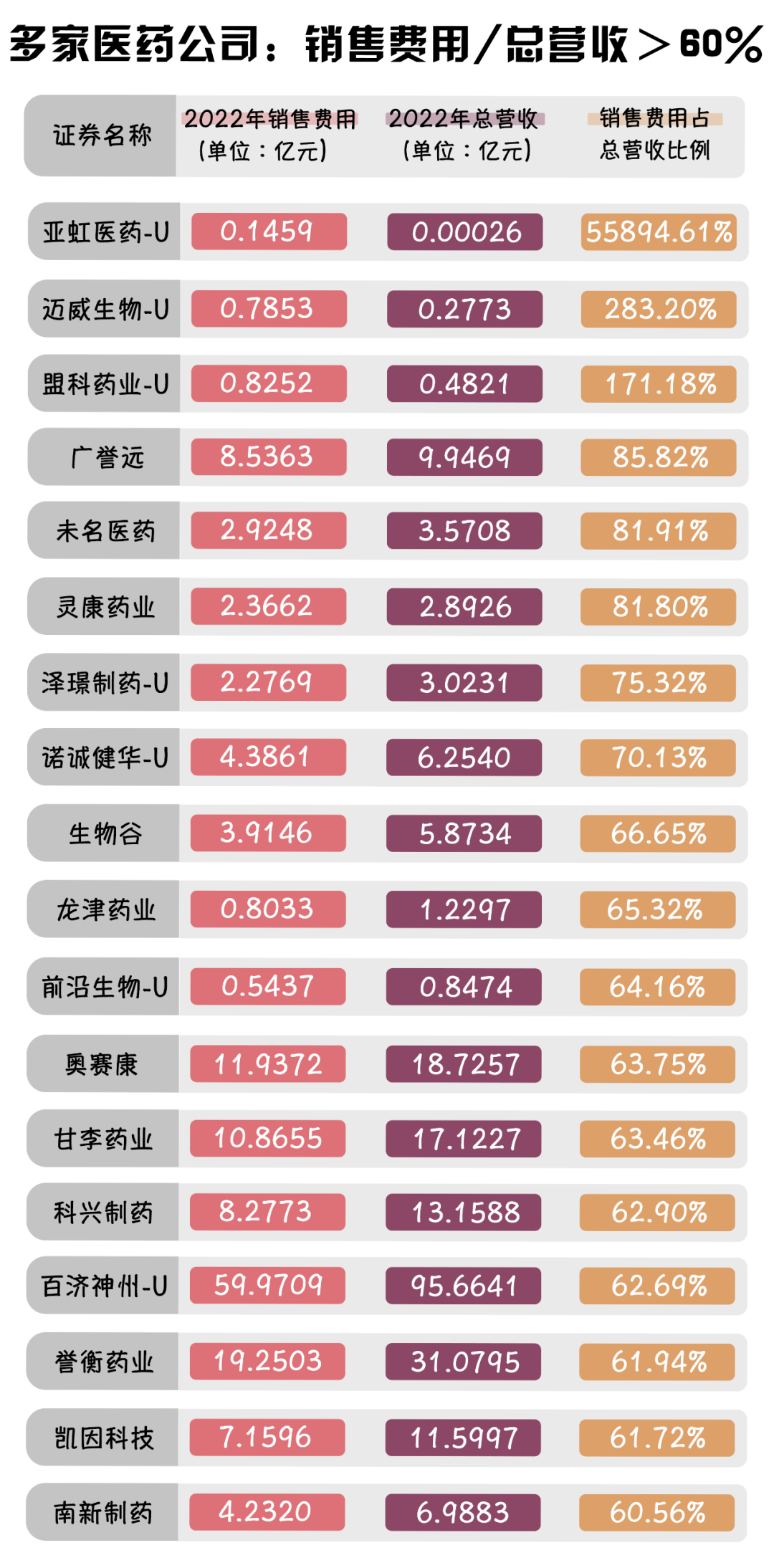 2.多家藥企銷售費用占總營收的比例超過60%