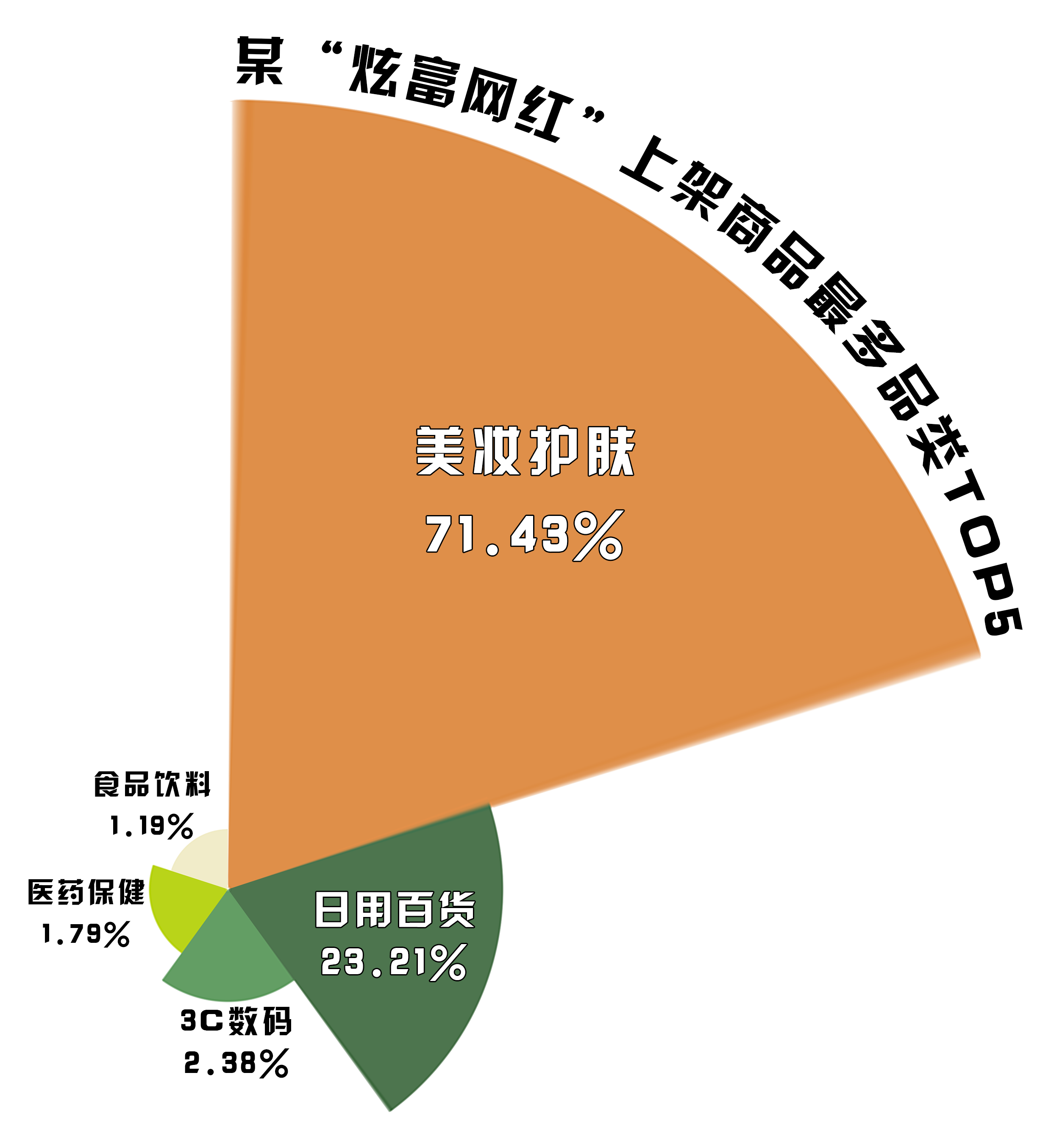 2.“炫富網(wǎng)紅”帶貨品類中,美妝護膚最賺錢
