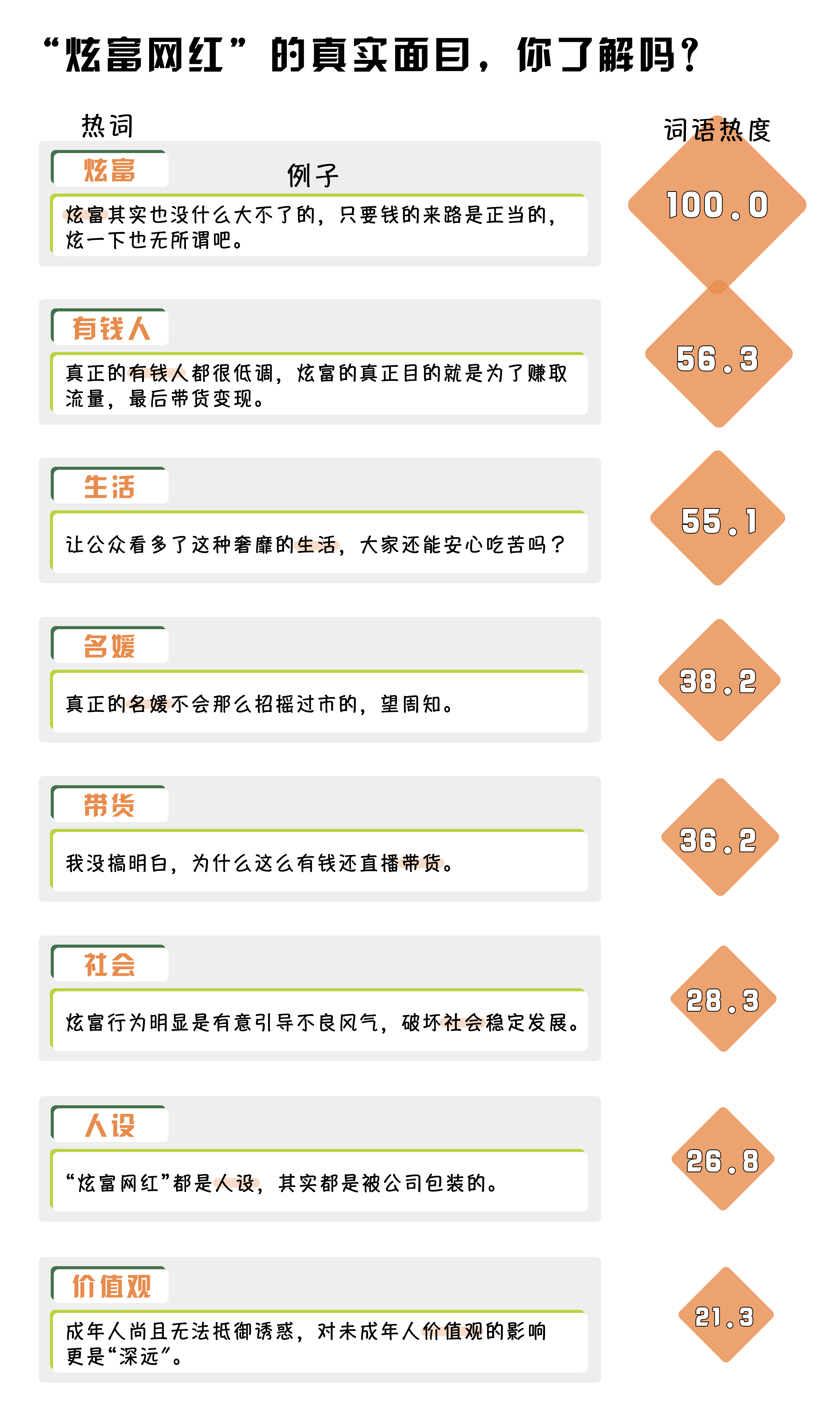 網(wǎng)絡(luò)炫富,鼓吹的是拜金主義、享樂主義、攀比主義,傳遞了扭曲的消費觀、價值觀,破壞了正向良好的網(wǎng)絡(luò)環(huán)境。