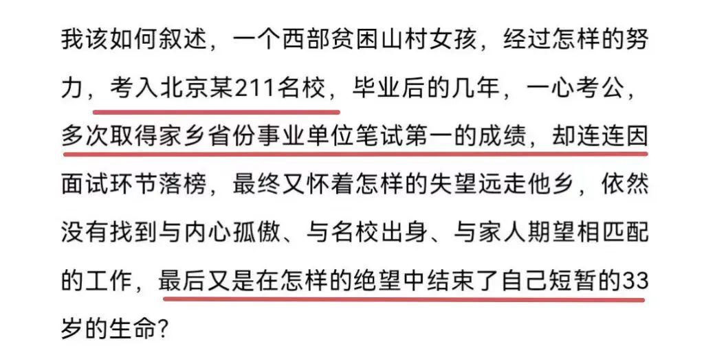 8月16日,微信公眾號(hào)“貞觀”發(fā)布一篇作者為“十二橡樹”的文章《一個(gè)外地女孩死在了我出租的公寓》。文章稱,今年4月,一名來自寧夏西海固山區(qū)的女孩租住了作者的單身公寓,她畢業(yè)于北京211高校,職業(yè)為會(huì)計(jì),當(dāng)時(shí)正在陜西西安找工作。女孩畢業(yè)后一心考公,多次取得家鄉(xiāng)省份事業(yè)單位筆試第一的成績(jī),卻一次次在面試環(huán)節(jié)落榜。6月25日,有人發(fā)現(xiàn)女孩疑似餓死在出租屋內(nèi),警方已介入處理。8月18日,“貞觀”以保護(hù)當(dāng)事人為由刪除該文章,并回應(yīng)稱文中所述為真實(shí)事件。8月19日,“貞觀”再次回應(yīng)稱文章來自作者投稿,經(jīng)過事實(shí)性審核,但案發(fā)地并非西安市,而是在周邊市縣。相關(guān)文章在社交平臺(tái)上引起熱傳,輿論呈現(xiàn)兩極分化:部分網(wǎng)民表示震驚和悲涼,借此對(duì)社會(huì)表達(dá)不滿;部分網(wǎng)民則對(duì)文內(nèi)相關(guān)細(xì)節(jié)的真實(shí)性提出疑問。