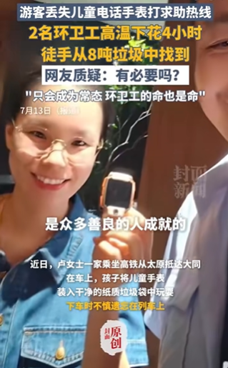 7月13日,“翻垃圾找兒童手表被質(zhì)疑浪費人力”話題沖上微博熱搜第一。引發(fā)爭議后,大同市城管局副局長回應稱,此前也有過幫市民尋找失物的先例,此次并非特殊個例,“只要老百姓有需求,我們肯定去做”。該言論再次激發(fā)網(wǎng)民不滿。多數(shù)網(wǎng)民認為“有求必應”也要區(qū)分輕重緩急。同時,圍繞游客身份衍生出特權(quán)猜測,有網(wǎng)民爆料其為“深圳市寶安區(qū)人民法院政治部主任盧某”“深圳紀委干部”,對此涉事法院緊急辟謠。主流媒體圍繞公共服務邊界問題進行探討,如《大河報》刊文指出,當個別需求輕易撬動巨大公共力量時,公共資源或?qū)⒚媾R被無度索取的危機;央廣網(wǎng)認為,相關管理部門應建立更科學的價值評估體系,在滿足民眾需求與資源優(yōu)化間找到平衡。