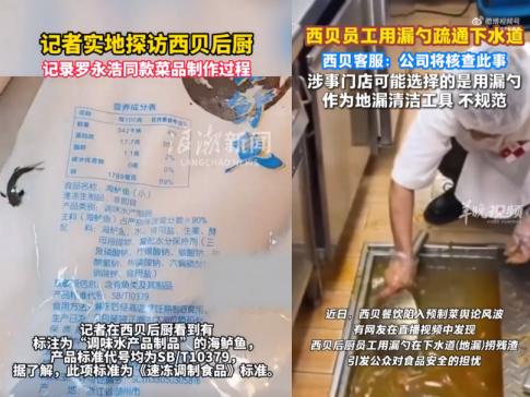 9月12日起,中國藍(lán)新聞、百姓315等多家媒體紛紛實地直播探訪各地西貝門店,先后曝出西貝門店后廚使用電磁爐而無明火灶;餐品原材料使用多種保質(zhì)期數(shù)月以上的冷凍食材,包括用于制作兒童餐的“速凍西藍(lán)花”、生產(chǎn)自2024年9月的“凍羊腿”、含食品添加劑的“凍海鱸魚”;部分餐品使用轉(zhuǎn)基因大豆油等后廚情況。此外媒體直播還顯示,西貝員工疑似使用廚具漏勺打撈疏通下水道。