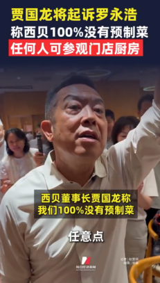 9月13日,媒體報道賈國龍接受采訪稱此次事件已致西貝營業(yè)額下降,“可能昨天和前天每天生意掉了100萬元”。賈國龍還稱,“生意我可以不做,是非必須得辯”,預(yù)制工藝不是預(yù)制菜,出餐效率、標(biāo)準(zhǔn)化程度越高的餐飲企業(yè),預(yù)制程度越高。賈國龍同時表示,消費者對預(yù)制菜有很多誤解,其實很多預(yù)制菜一點添加劑都不用,直接通過零下18度冷凍鎖鮮是最好的技術(shù),建議看菜品等級而非是否現(xiàn)做。