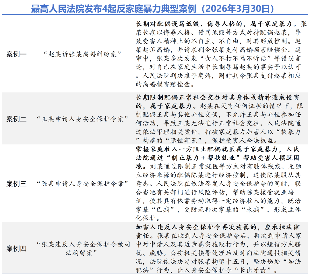 據(jù)中國(guó)新聞網(wǎng)等多家媒體3月30日?qǐng)?bào)道,今年是《中華人民共和國(guó)反家庭暴力法》實(shí)施十周年。3月30日,最高人民法院舉行新聞發(fā)布會(huì),發(fā)布4起反家庭暴力典型案例,并回答記者提問。