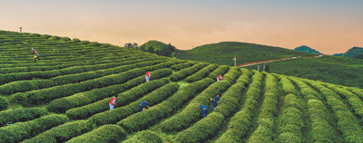 貴州省銅仁市石阡縣聚鳳鄉(xiāng)良友現(xiàn)代農業(yè)茶園內,員工在采茶。當?shù)卮罅Πl(fā)展茶產業(yè),惠及11.26萬人。楊坤攝(人民視覺)