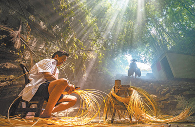 湖南省湘西土家族苗族自治州永順縣毛壩鄉(xiāng)澧源村發(fā)展竹藝加工,產品遠銷海外。圖為當?shù)卮迕裨诰幹浦裰破贰S喙恺垟z(人民視覺)