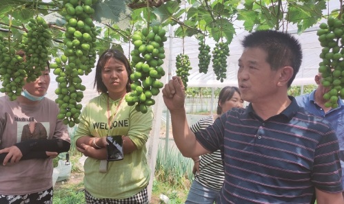 夏邑縣農(nóng)廣校聘請(qǐng)中國(guó)農(nóng)科院鄭州果樹(shù)研究所專(zhuān)家劉三軍博士到北嶺鎮(zhèn)現(xiàn)場(chǎng)指導(dǎo)葡萄生產(chǎn)管理技術(shù)。 王留標(biāo) 攝