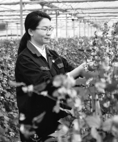 上海市浦東新區(qū)“巾幗新農(nóng)人”、上海紅剛青扁豆生產(chǎn)專業(yè)合作社總經(jīng)理王黎娜在管理青扁豆。